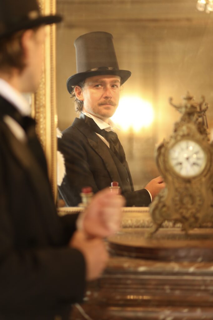 En ce sens, j’éprouve moi-même une certaine ambiguïté : c’est un héros que j’adore détester. Fait-il partie de la clique des anti-héros ? C’est un personnage plus réaliste qu’un héros, dans un monde qui lui ressemble tout autant : car Bel- Ami est aussi le reflet d’une époque, le miroir de sa société où règne l’apparence, où il faut connaître les règles du jeu et savoir les manier avec art et intelligence. Le plateau devient un terrain de jeu idéal, où tout peut basculer, où se dressent les gagnants et les perdants, où les rôles peuvent s’inverser à tout moment.