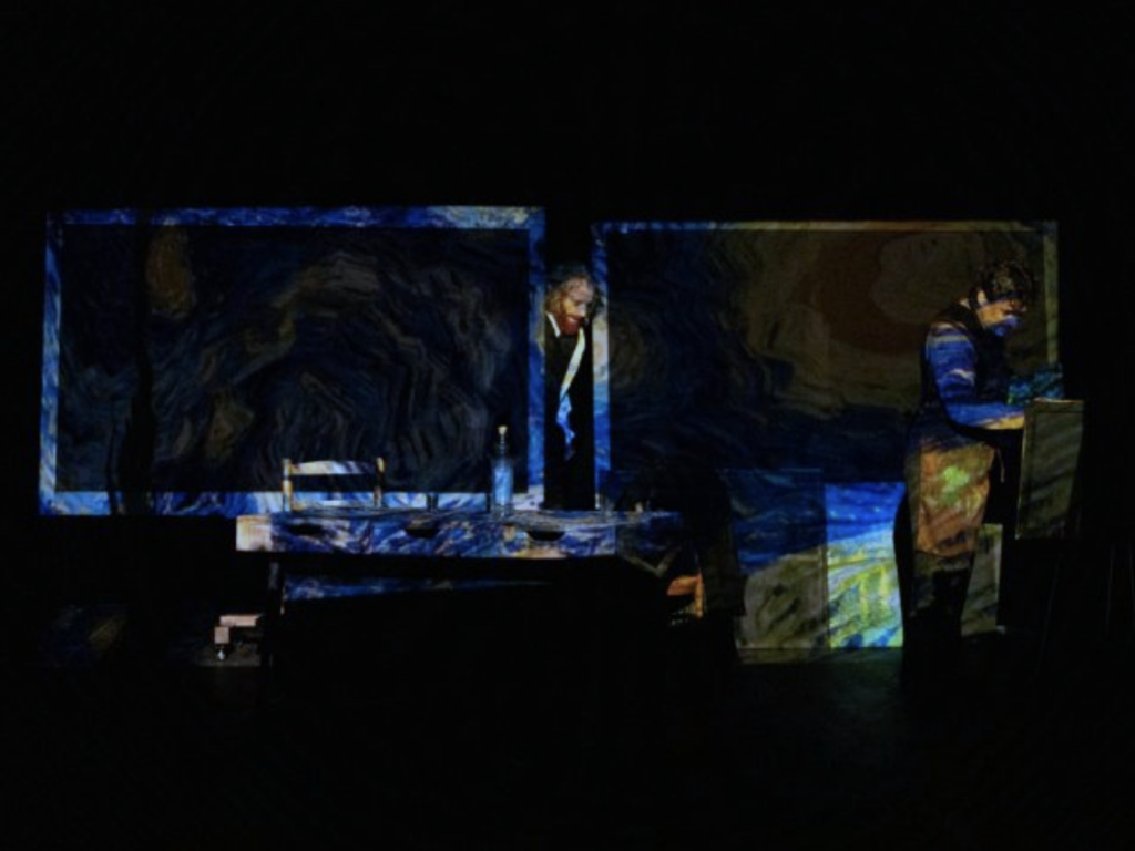 Une mise en scène visant à l’ingéniosité, pour permettre de changer vite et souvent de temps et de lieu, et d’embarquer lentement le public dans le tourbillon des pensées de Van Gogh.