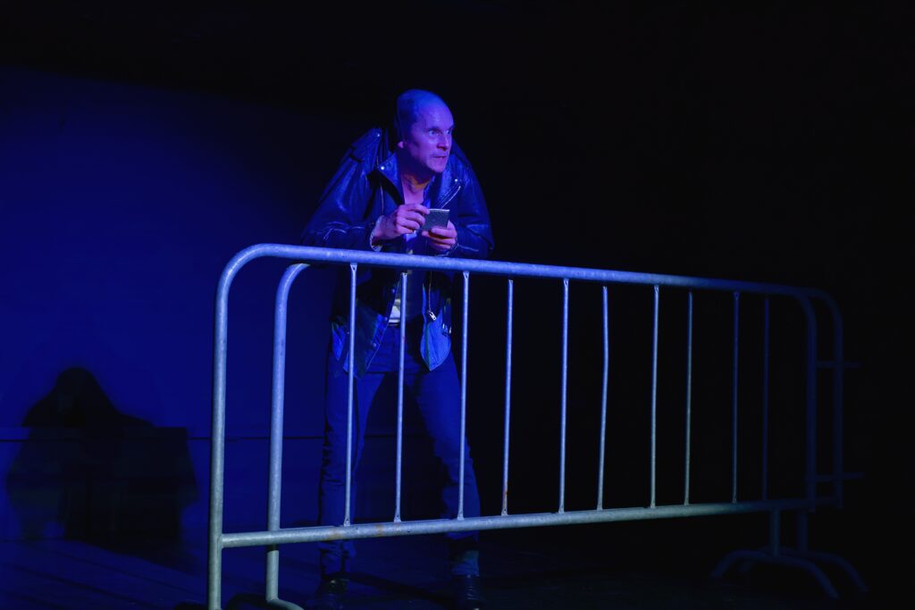Barrières dont nous nous en servirons tout au long du spectacle pour raconter le dedans et le dehors, la pluie et le beau temps, le gigantisme du Stade et l’intimité des personnages, les idoles et les idolâtres, les passionnés et les raisonnables, le temps de la folie des autres et le temps de la quête de soi.