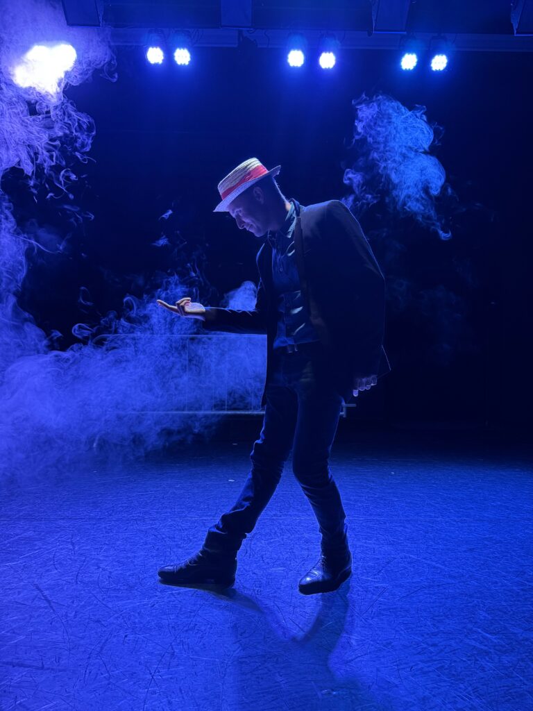 Sur scène, un comédien.